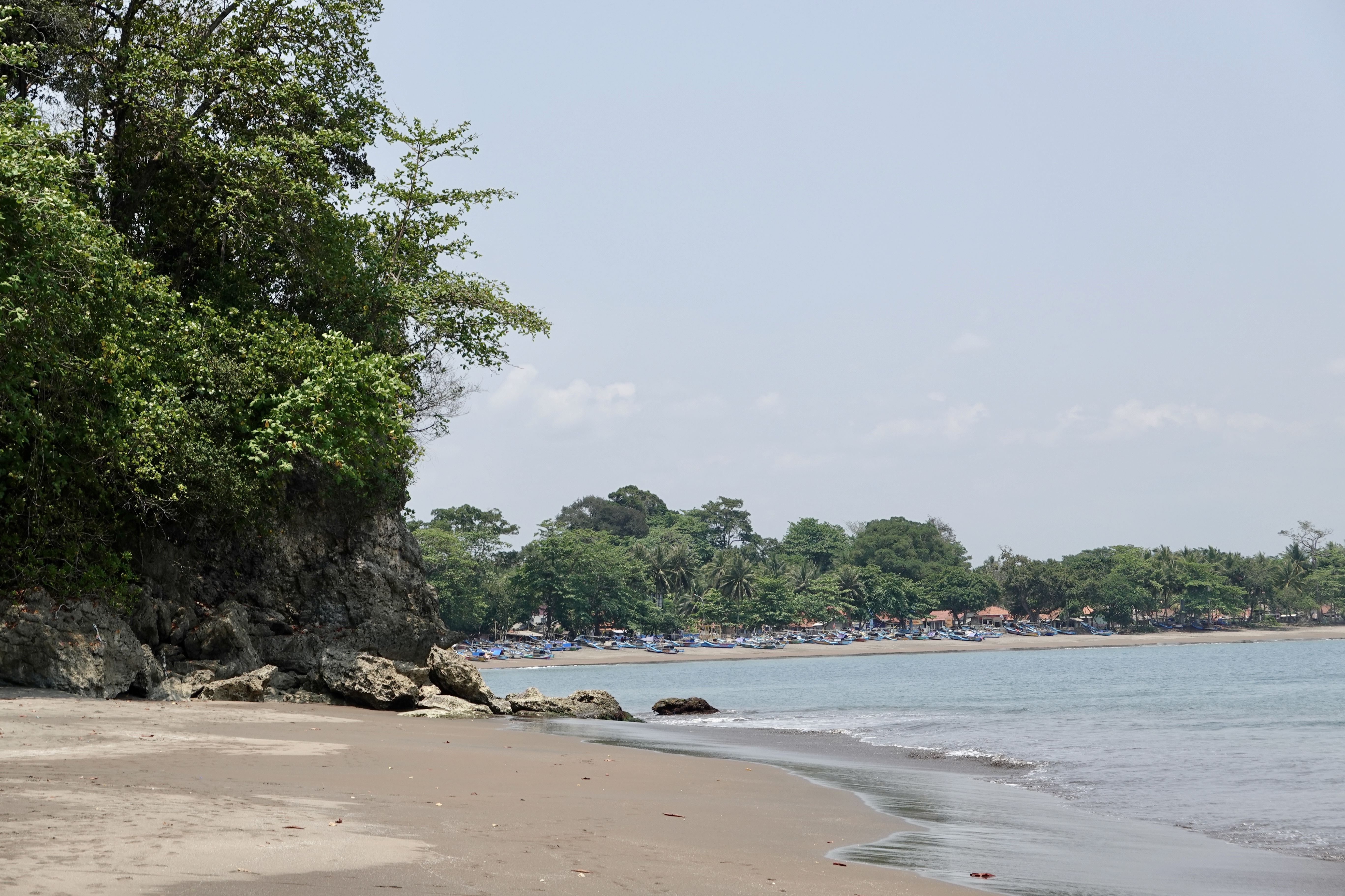 Batu Karas on the other hand, a small fishing village some 10km to the west of Pangandaran is something quite different. It has a handful of small hotels and homestays, two or three eating places and a delightful beach divided into coves by a small headland. The eastern beach is mainly a landing point for the village’s fishing boats while the western beach serves as a surfing area for visitors. During my stay, in late October, the surfing opportunities did not appear that great, with relatively small areas of timid surf. This did not deter the surfing brigade from trying to ride the waves though.