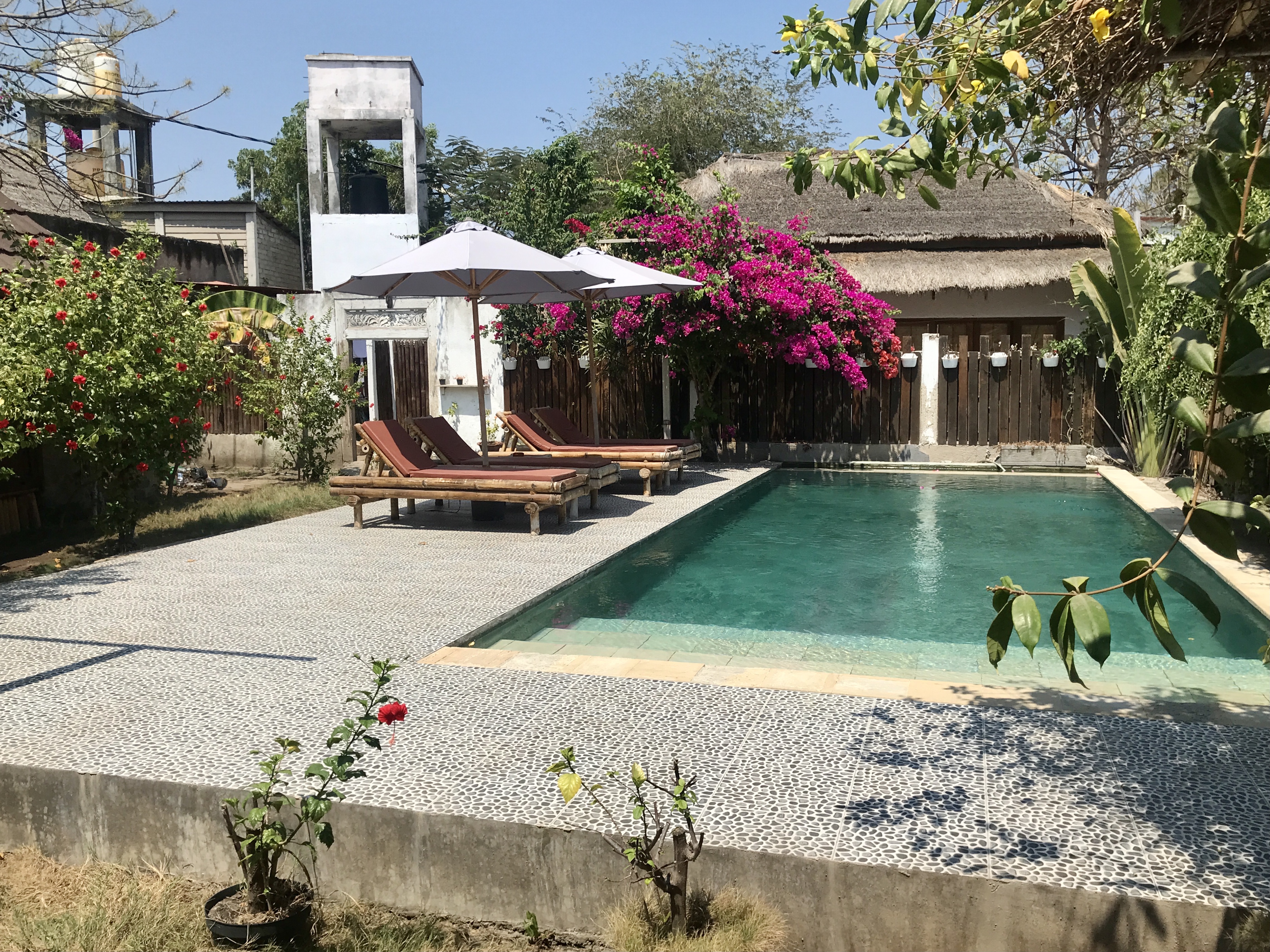 I spent my three nights on the island at the Lonely Planet listed Blu d’a Mare. This offers a collection of around half a dozen 1920’s Javanese bungalow houses set in a garden setting with small pool. Each bungalow features old wooden floors, air conditioning and a modern sunken bathroom, complete with fresh water shower. All of this at the give away price of IND 700,000 per night.